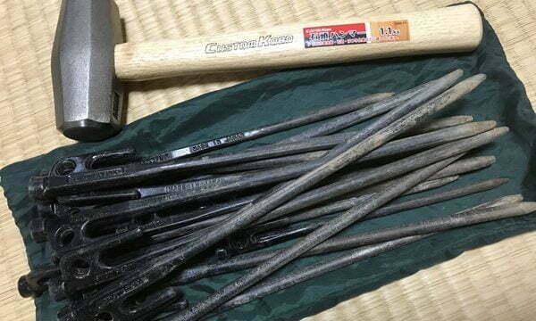 ファミリーキャンプの必須ペグ スノーピークソリッドステーク(実践編)ペグ(スノーピークソリッドステーク)の代替はなかなか見つからないですが、ハンマーはコーナンで売ってるのでええかな.このセットでペグ打ちすれば3、4発の打ち込みで完了しますよ...